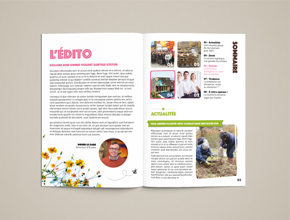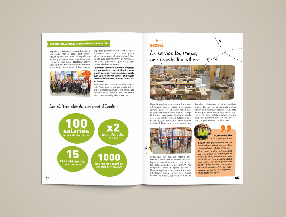Création packaging pour la marque « La belle Potagère » et proposition de refonte graphique du journal interne.
