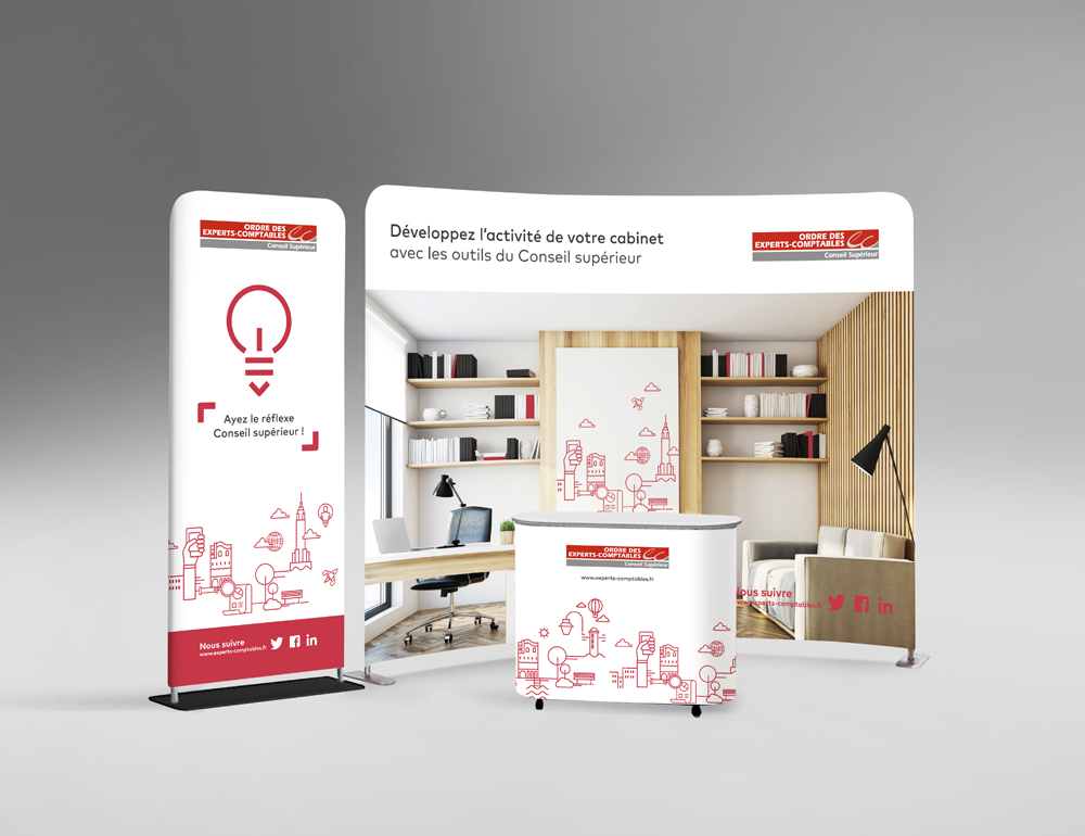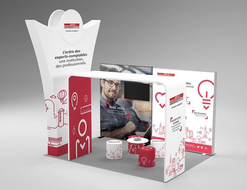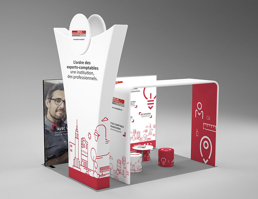 Création de l’identité graphique du stand de l’Ordre des Experts Comptable sur le thème de la proximité et des outils technologiques.