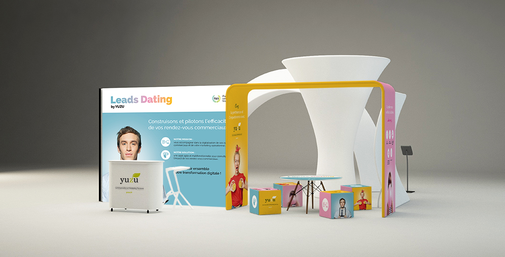 Refonte de l’identité graphique du site web de l’agence YUZU autour du concept « Osez ». Déclinaison pour le stand du salon e-marketing. www.yuzu.fr